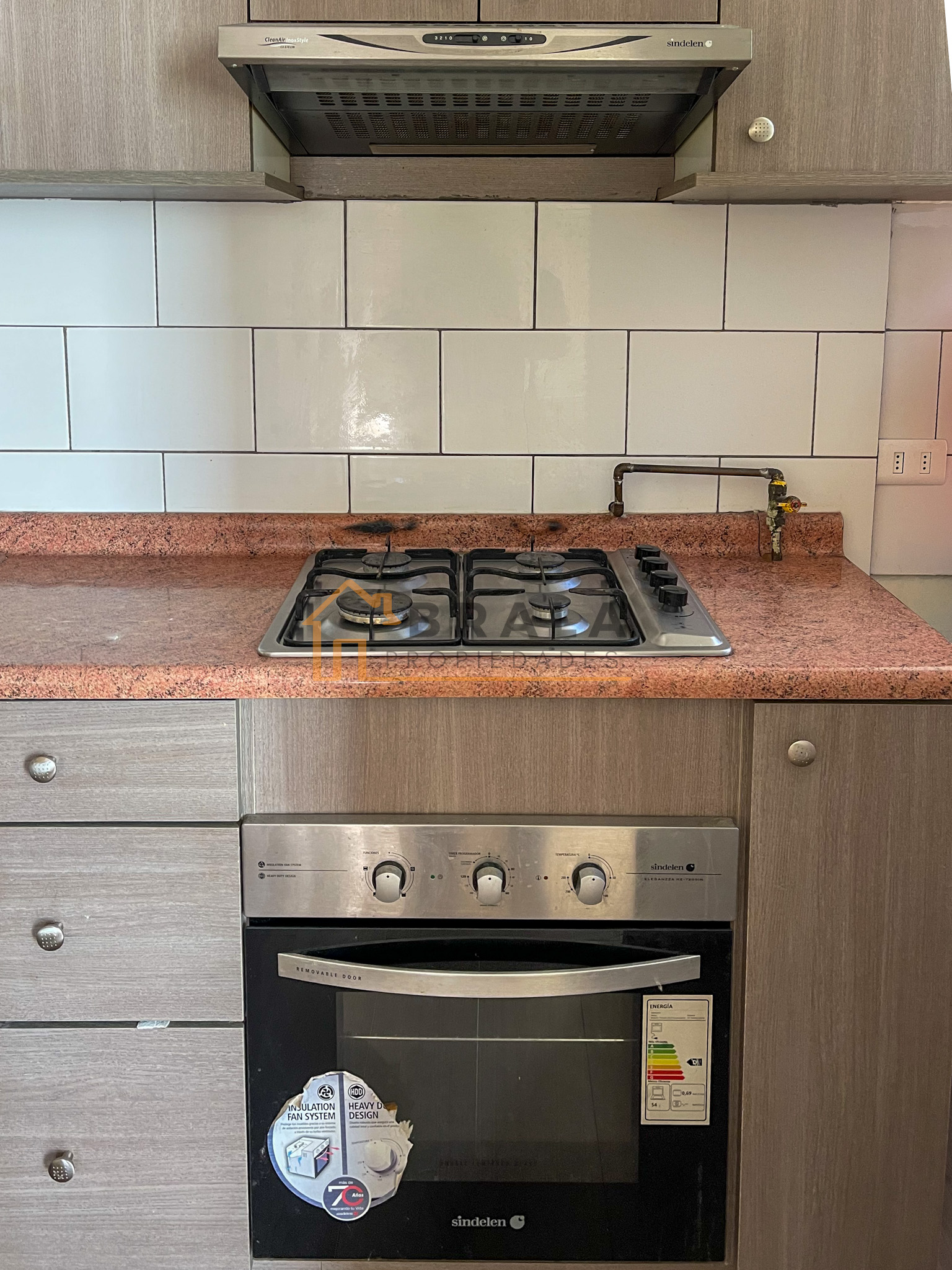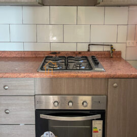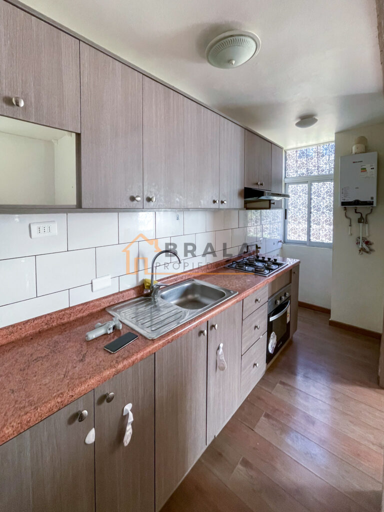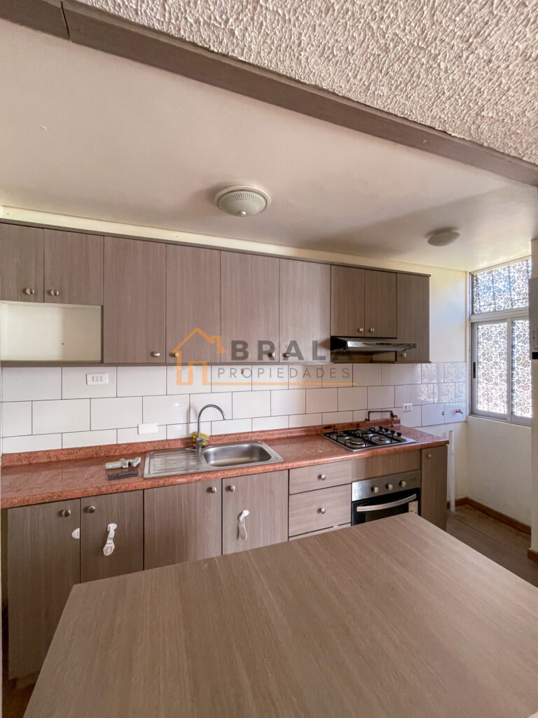 Cocina abierta amoblada y equipada